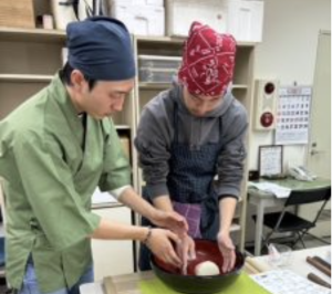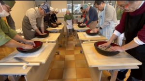 そば打ちの準備から片付けまでの一連の工程を大切にしながら、参加者同士が協力し合い、ともに技術を磨いていきます。